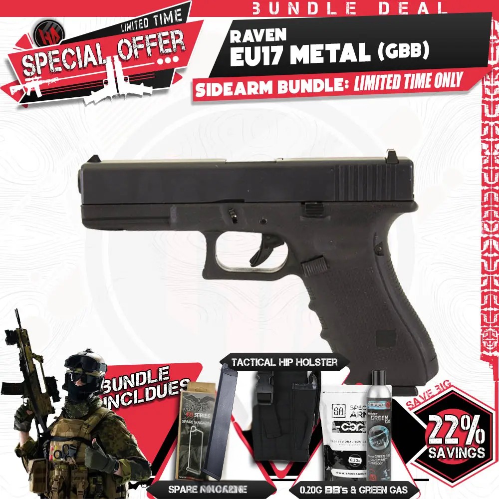 The Raven EU7 delivers the look, feel, and performance of a high-tier sidearm without the premium price tag. With its sleek aluminium slide, crisp blowback action, and wide magazine compatibility, it offers a responsive, immersive shooting experience. Whether you're gearing up for weekend matches or competitive milsims, the EU17 adapts to your playstyle and holds up under pressure.